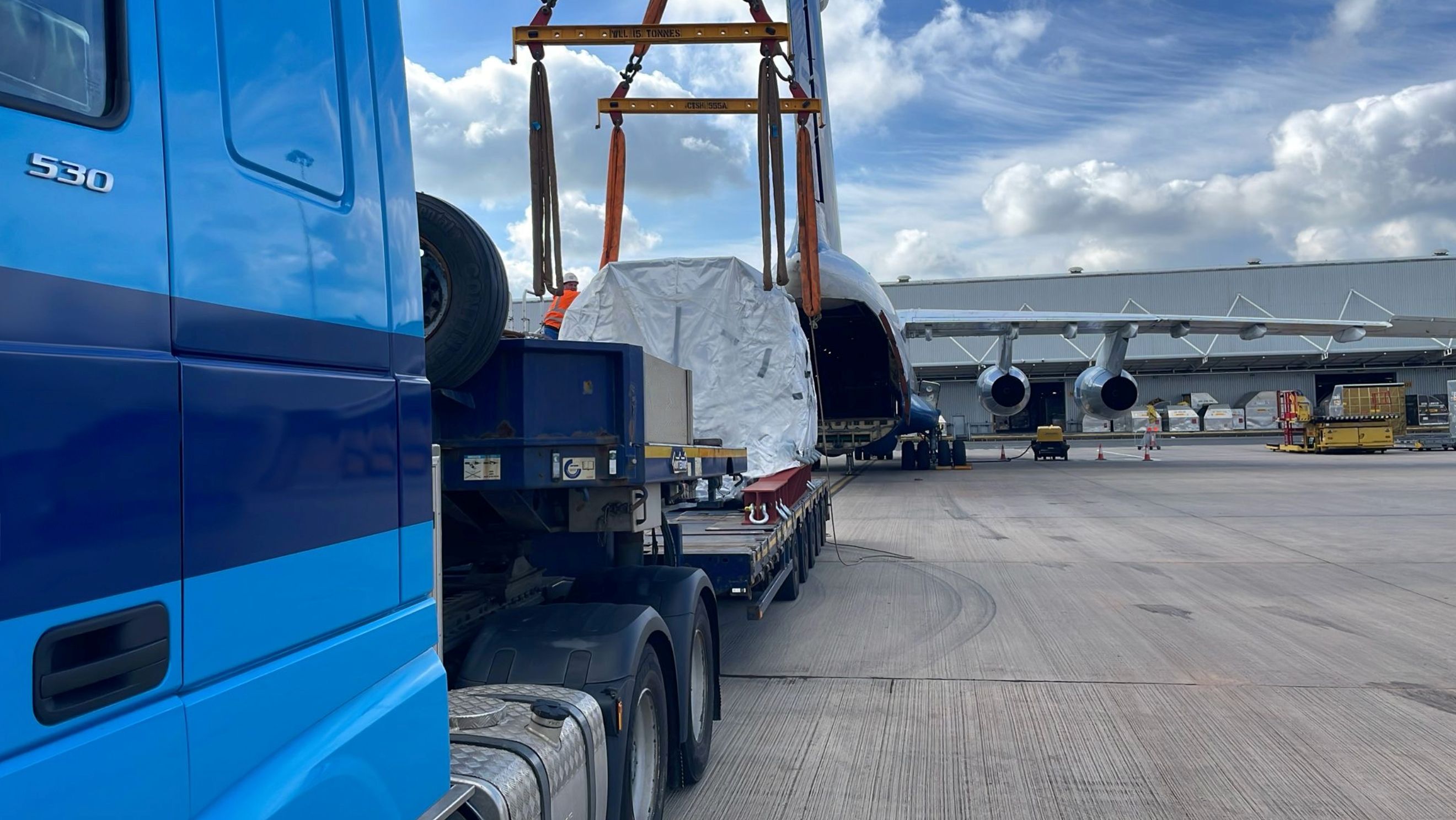 Take a look at the airfreight charter photos below of how we loaded it into the back of a IL-76 plane...